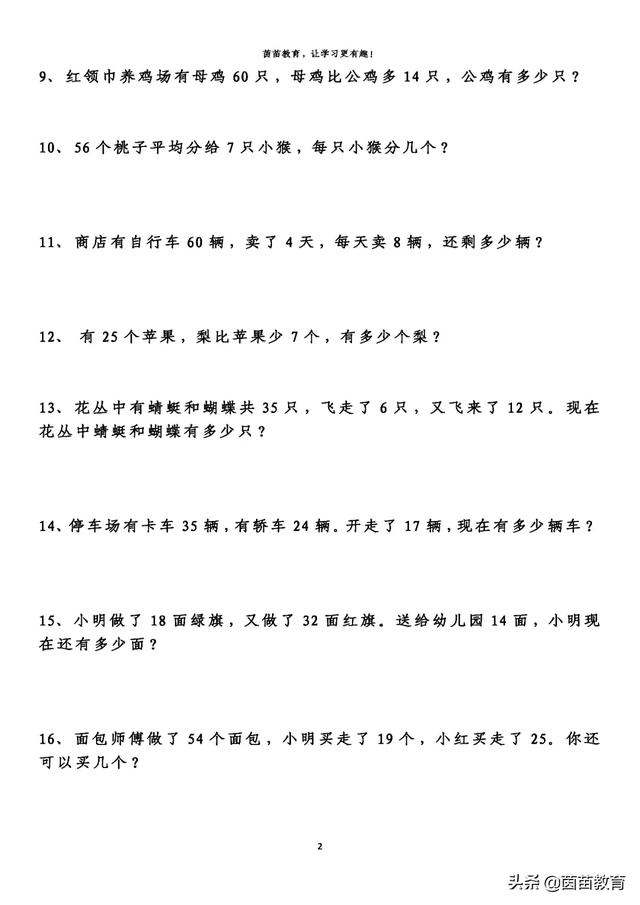 小学二年级数学上册 比多少 应用题大全 12页pdf文档 电子档可打印版资料下载 小学试卷 小学教育网